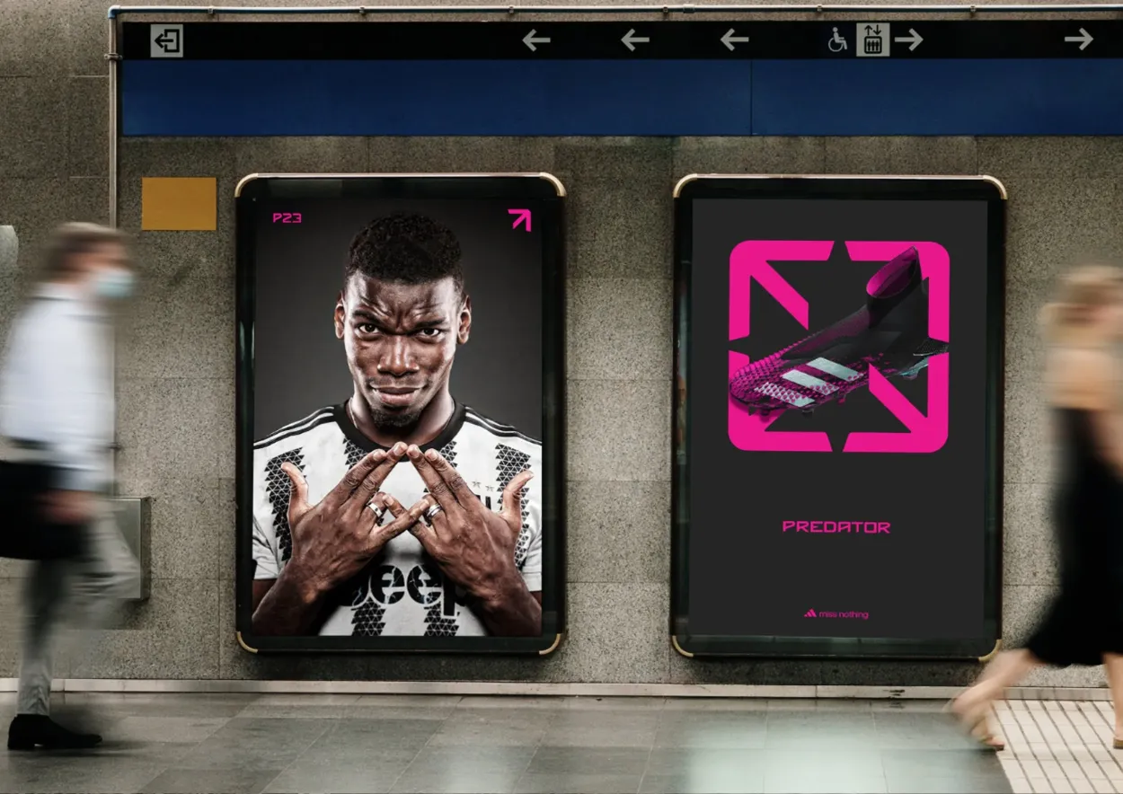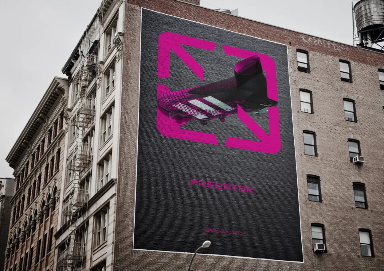 To launch the Predator Accuracy boot, we created a simple design system that that tapped into that instinct. An Accuracy arrow that pointed out the corner of an imaginary goal. We teased the release by placing non branded Accuracy arrows across European cities, marking the hidden goals only true players see. A week later, we revealed the icon as the visual signature of the new boot. Then our ‘Predator Pro ambassadors’ brought it to to the terraces by flashing the icon as a hand gesture after scoring on match day.