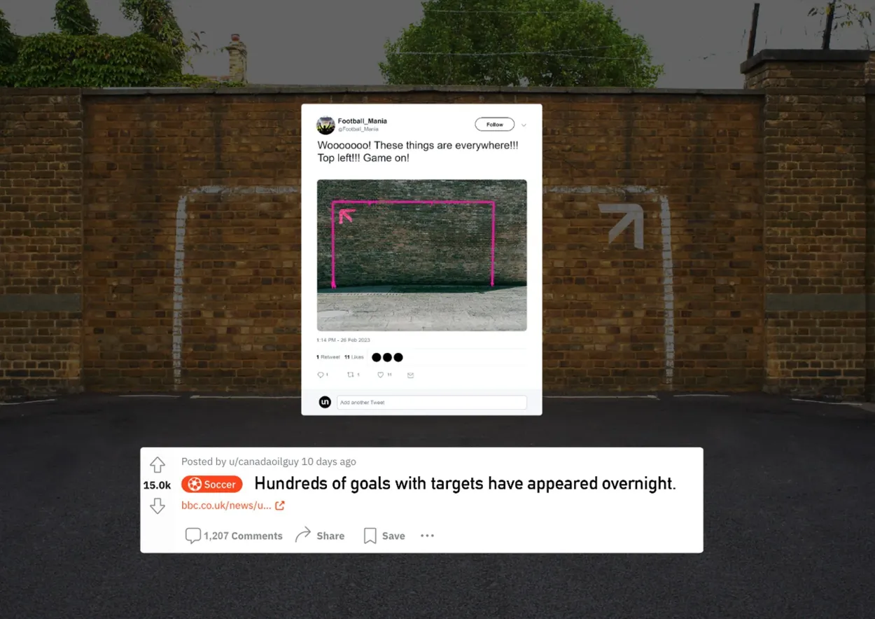 To launch the Predator Accuracy boot, we created a simple design system that tapped into that instinct. An Accuracy arrow that pointed out the corner of an imaginary goal. We teased the release by placing unbranded 'Accuracy arrows' across European cities, marking the hidden goals only true players see. A week later, we revealed the icon as the visual signature of the new boot. Then our ‘Predator Pro ambassadors’ brought it to to the terraces by flashing the icon as a hand gesture after scoring on match day.